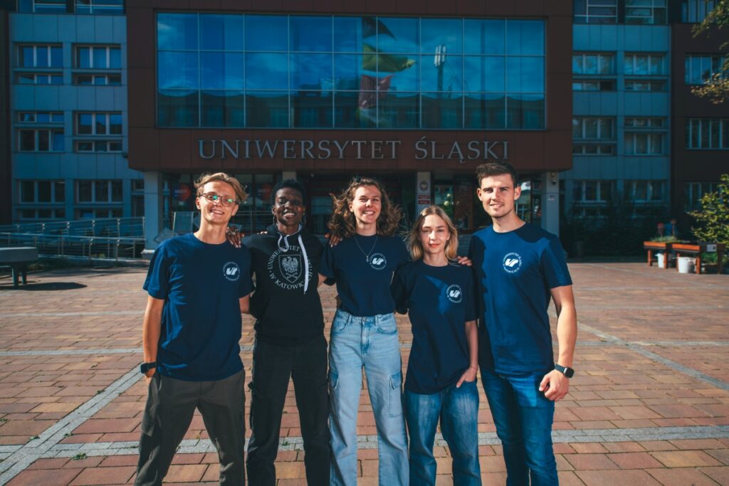 Studenci Uniwersytetu Śląskiego przed budynkiem rektoratu w Katowicach